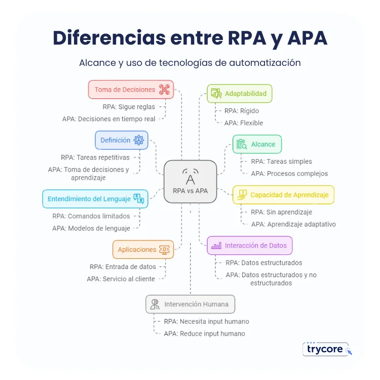 Aquí es donde APA marca la diferencia. Un RPA sigue un flujo rígido, mientras que APA es dinámico y se adapta en tiempo real.